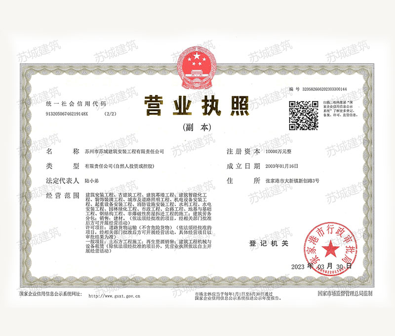 蘇州市蘇城建筑安裝工程有限責任公司,擁有主項建筑工程施工總承包一級資質(zhì),增項市政公用工程施工總承包二級資質(zhì)和建筑裝修